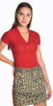 Efektně působí zapínání za krkem v podobě vázání na mašli a stojáček, který působí velmi elegantně. Tento model je jednobarevný a proto jej můžete kombinovat jak s kalhotami, tak i se sukněmi jakýchkoliv barev. Halenkové tričko je volnějšího, splývavého střihu, který zakryje případné nedokonalosti.