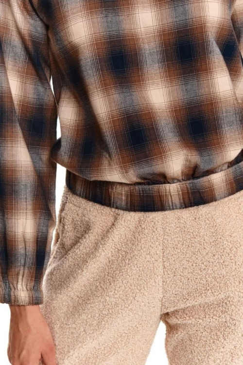 Kostkovaná bavlněná halenka v béžovo-hnědé kombinaci